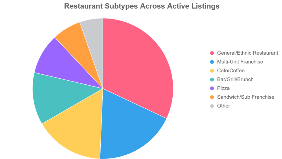 Listings that received the most buyer inquiries shared key traits. Moderate pricing ($150K–$400K) were the key price points for the month. Restaurants ready to go. Turnkey or fully equipped descriptions had the highest engagement. Clear earnings statements along with strong photography or video walkthroughs were also drivers for these listings.